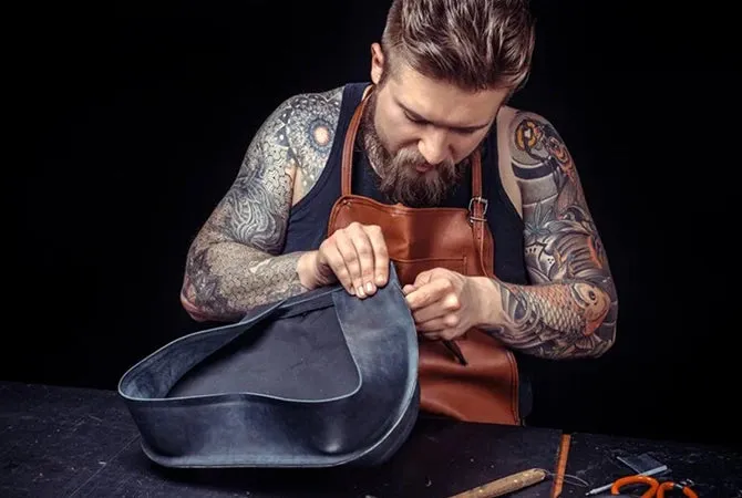 In order to process the leather, the leather must be tanned first. Leather tanning is a phenomenon that has been done for ages. You can relate to tanning in a lot of ways. In order for the hide to go under a tanning procedure, it first gets cleaned off all the dirt, blood, and hair from the beam house. After that, the processing takes place, which must be done before it can be used for leather product manufacturing. We use the best tanning machinery, which changes the chemistry inside the fibers that not only prevents the bacteria and fungi from getting through but also makes it impossible for them. The leather material then gets graded to different types of tanning such as vegetable-tanning, chrome-tanning, sheepskin leather, premium leather, PU leather, and Faux/Synthetic leather. All these materials are then used by our craftsmen to make our product according to the customer’s request.