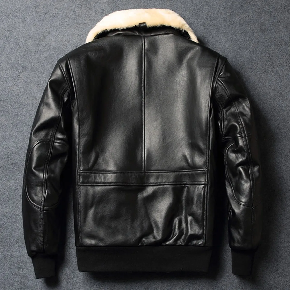 Men’s A2 Aviator Black Genuine Sheepskin Faux Fur Collar Air Force Pilot Casual Classic Bomber Leather Jacket