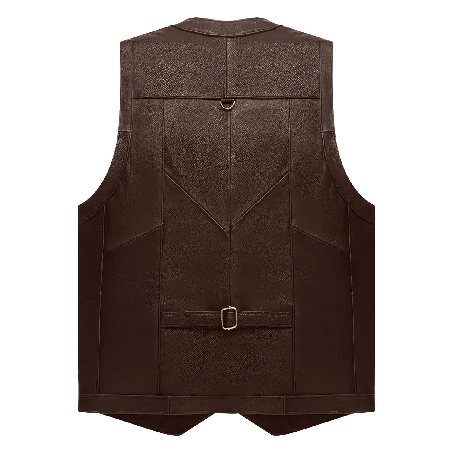 Men’s Brown Biker Genuine Cowhide V-Neck Cafe Racer Vest Multi Pockets Motorcycle Sporty Racer Leather Waistcoat