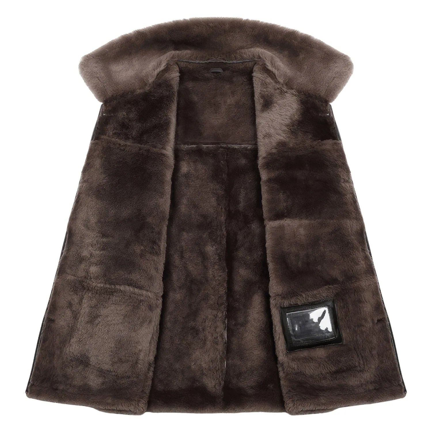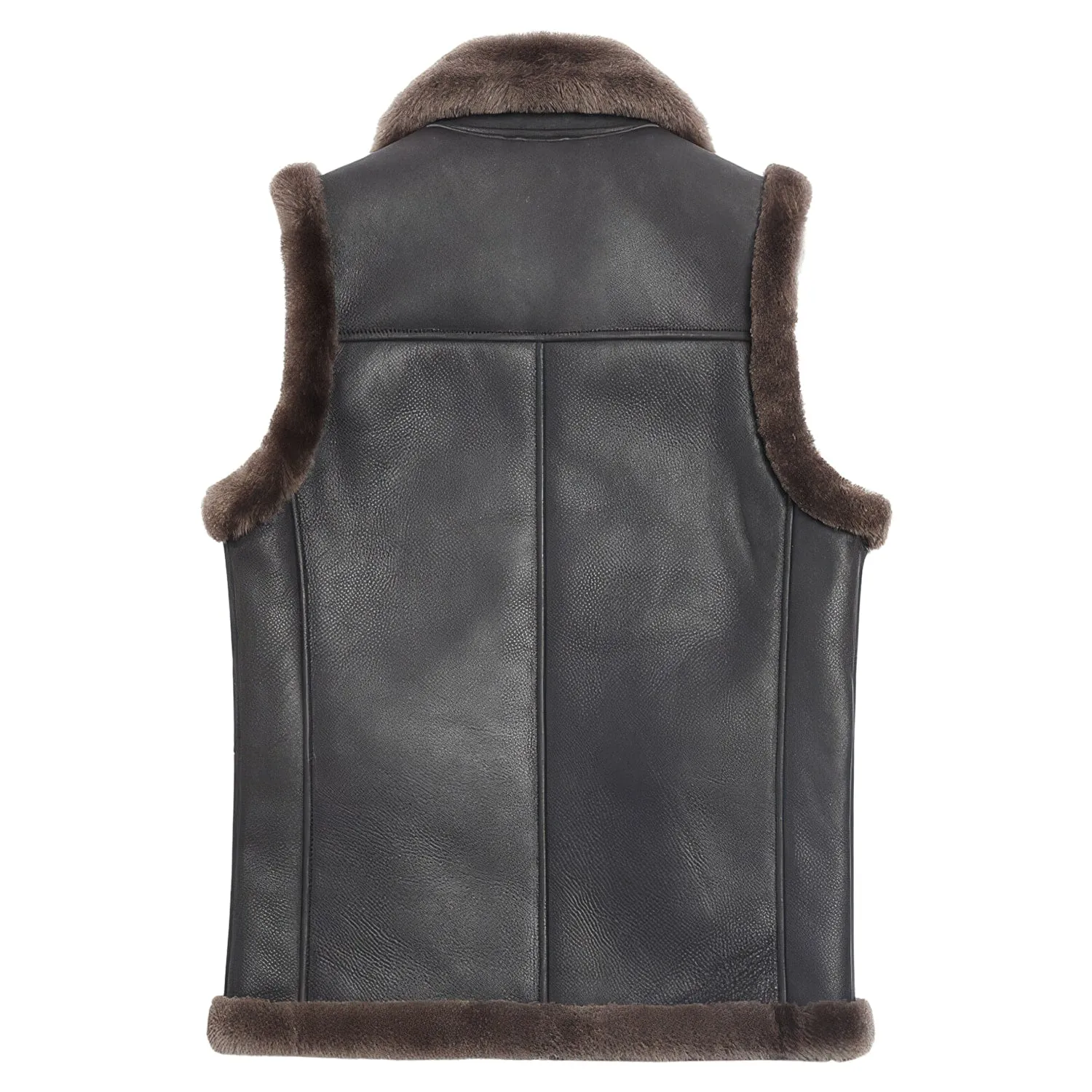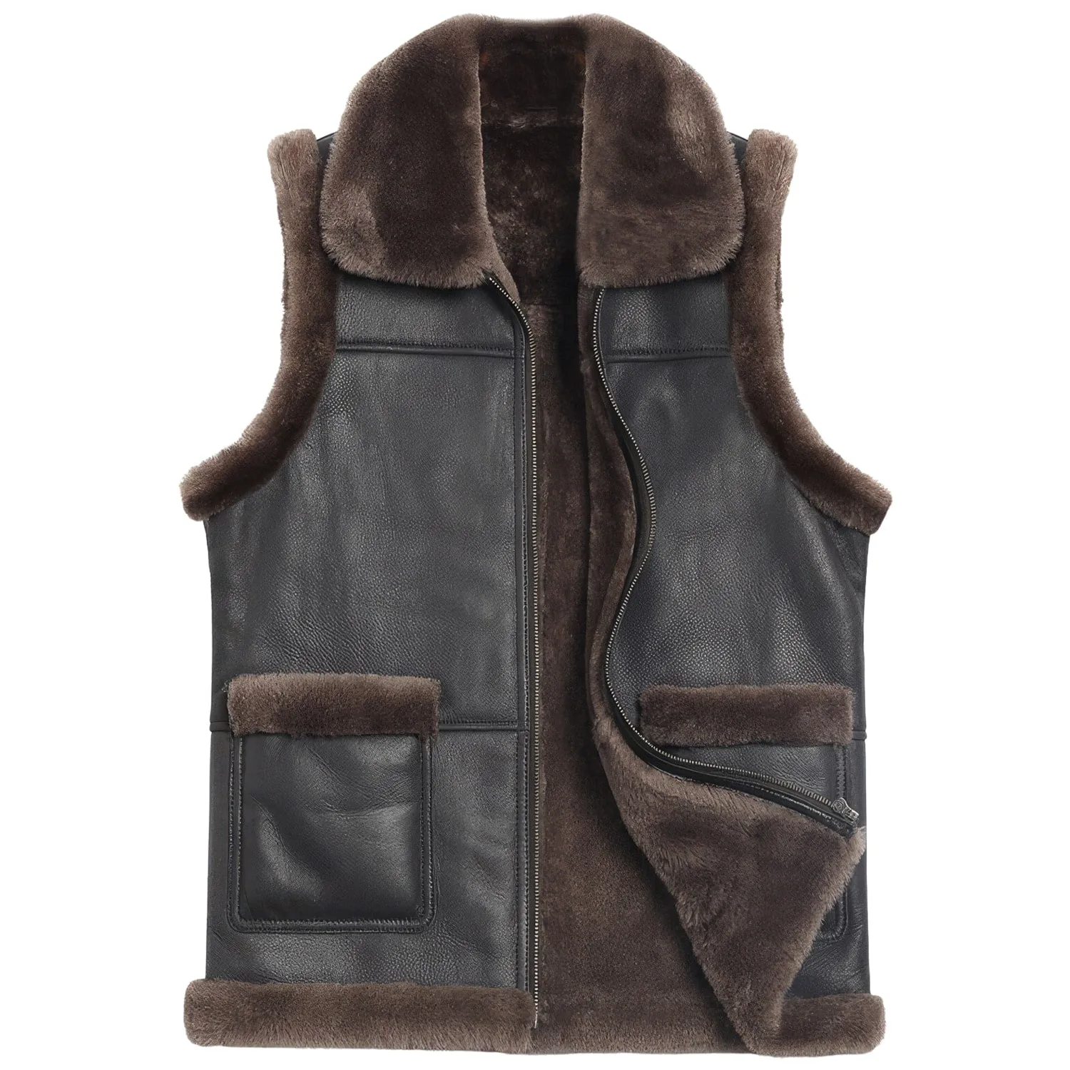 Men’s Coffee Brown Genuine Sheepskin Sherpa Shearling Faux Fur Lined Vest Winter Warm Thick Sleeveless Leather Waistcoat