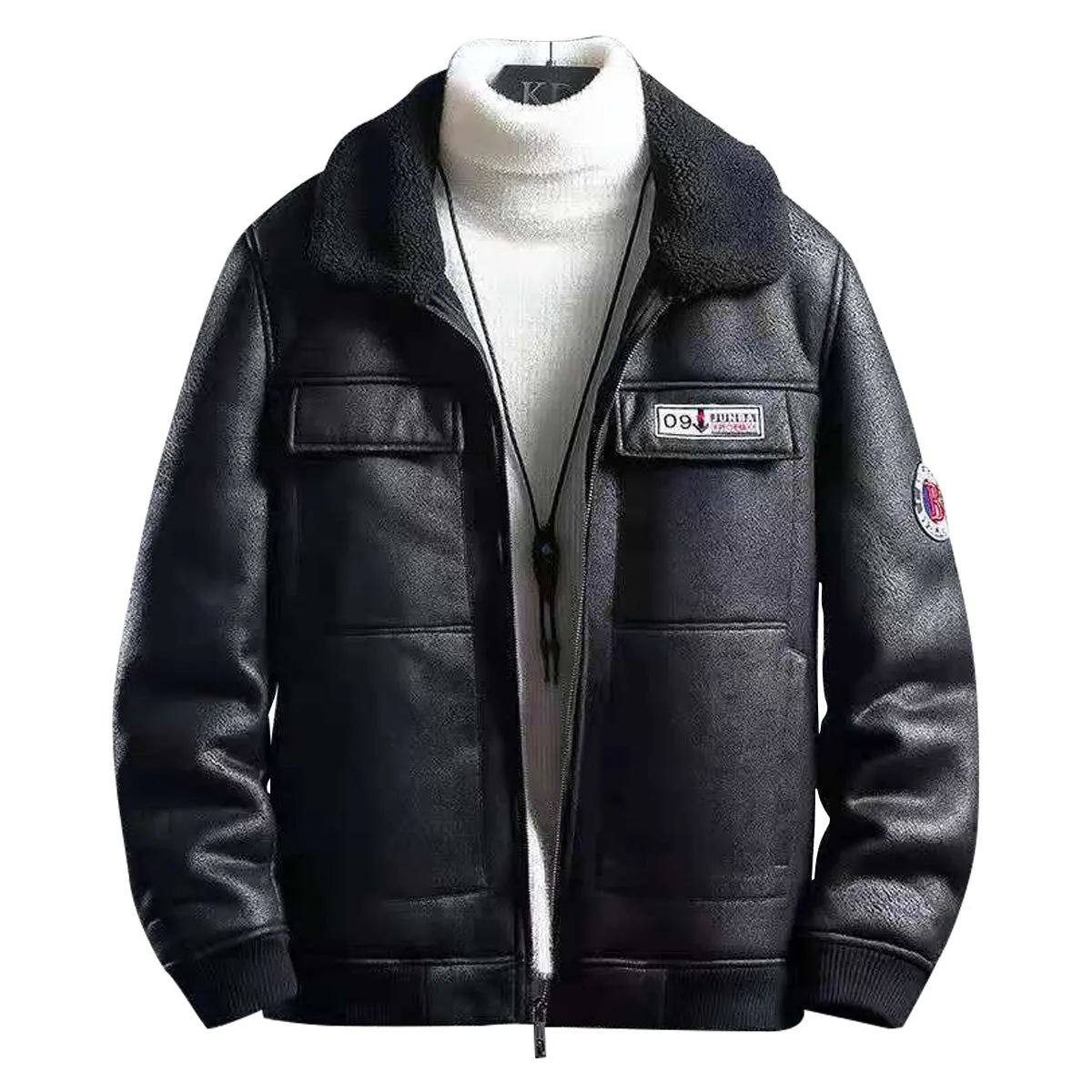 Men’s Vintage Distressed Black Bomber Aviator Genuine Sheepskin Sherpa Shearling Faux Fur Lined Air Force G1 Military Winter Warm Casual Classic Leather